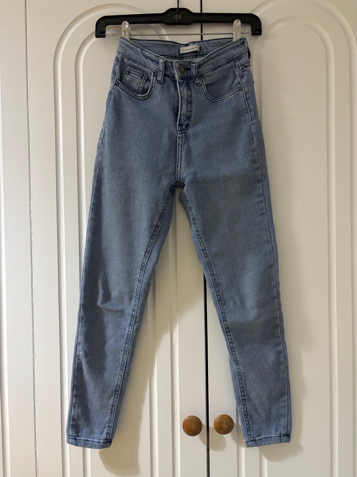 Düğmeli mavi kadın denim pantolon, günlük kullanım için rahat regular fit ve sokak stili tasarımıyla öne çıkar.