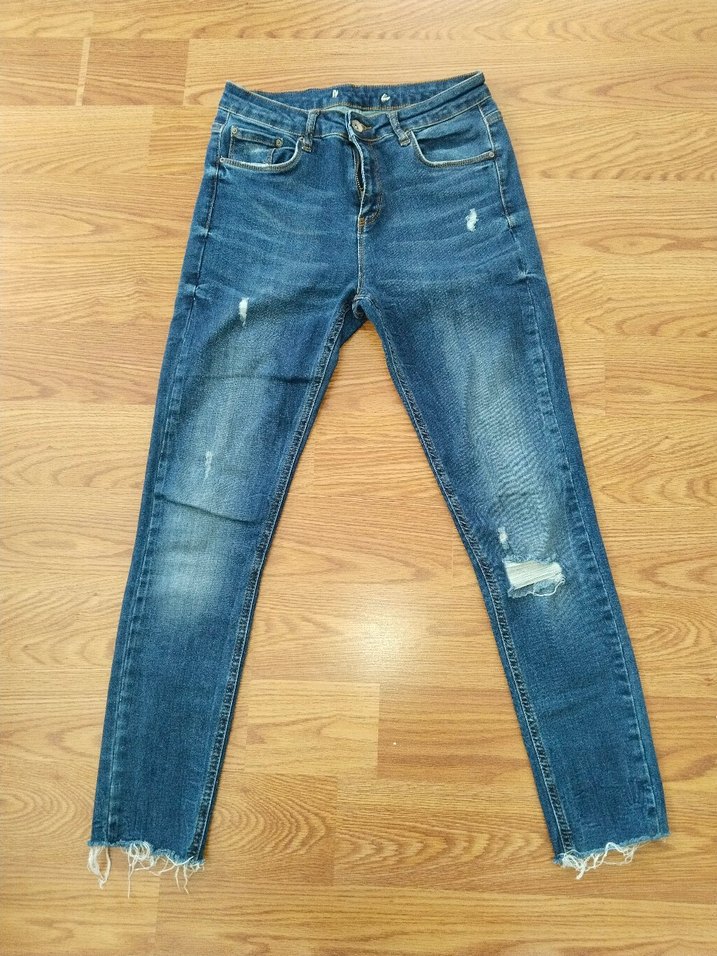 dar paça yırtıkli likralı kot