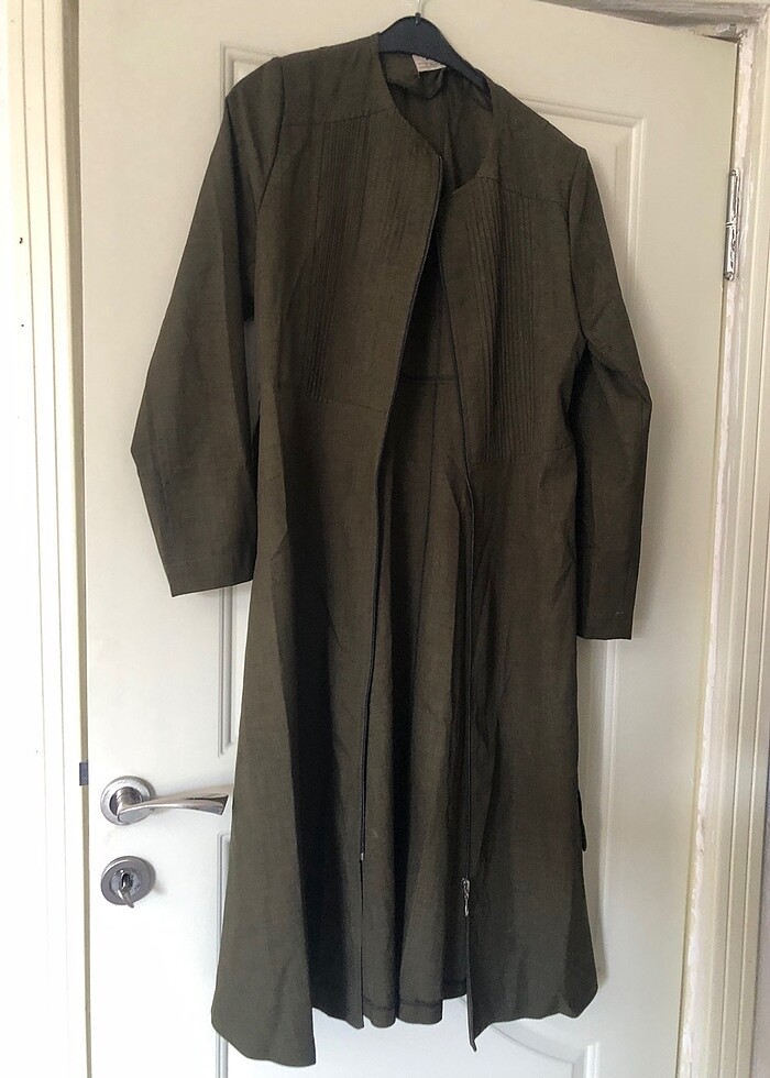 Çok uzun değil tunik gibi fermuarlı rengi haki ince yazlık baharlık kumaşı var bedeni olmadığı için satıyorum