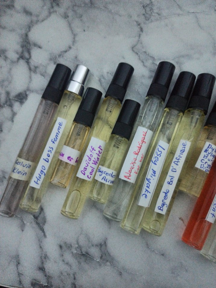 Çeşitli markalardan Calvin Klein, Hugo Boss ve Issey Miyake gibi kadın parfümlerinin küçük deneme boyu sprey şişeleri. adet fiyatı degismekte