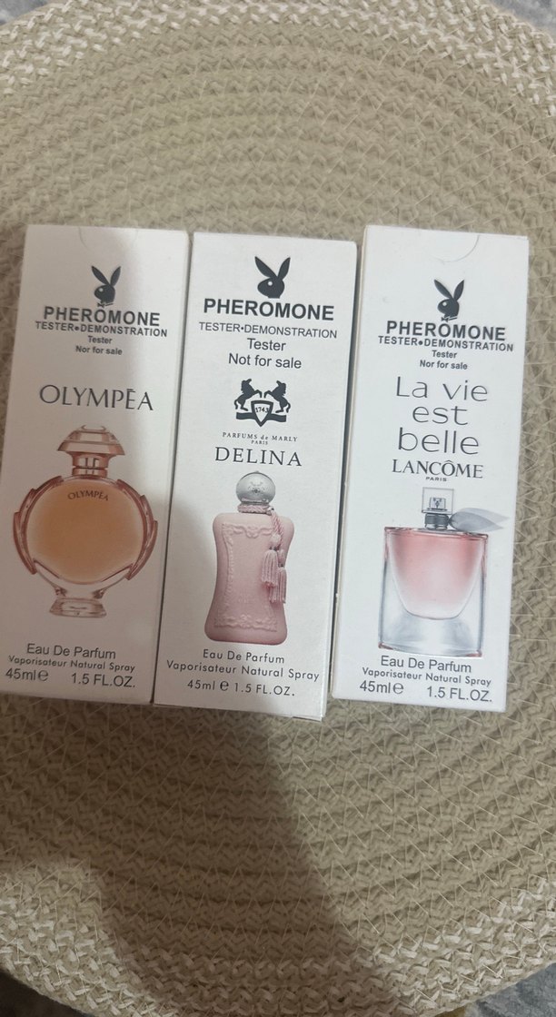 Olympea, Delina ve Lancôme La Vie Est Belle marka 3 adet 45ml Eau De Parfum tester parfüm seti. Pheromone etkili, bireysel satışa uygun değil.