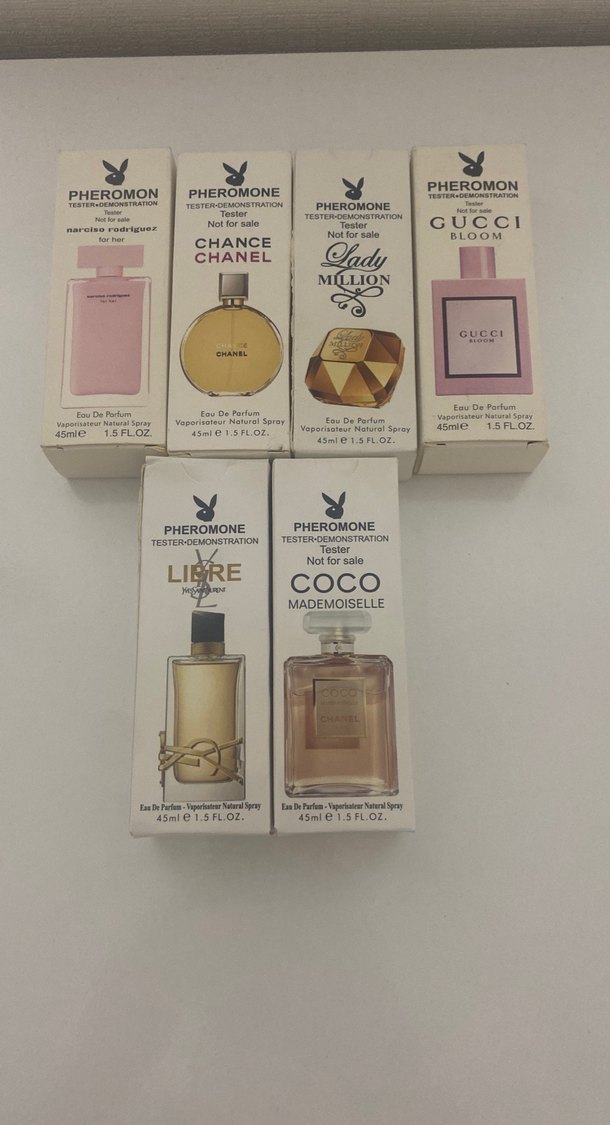 Chanel Chance, Gucci Bloom ve Coco Mademoiselle gibi popüler kokuların bulunduğu 6 adet 45ml tester kadın parfüm seti.