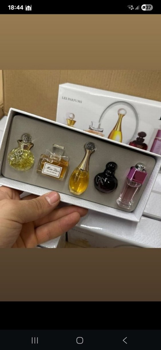 LESPARYUMS markasına ait, farklı şişe tasarımlarına sahip beş mini kadın parfümü içeren set. Farklı kokuları denemek için uygundur.