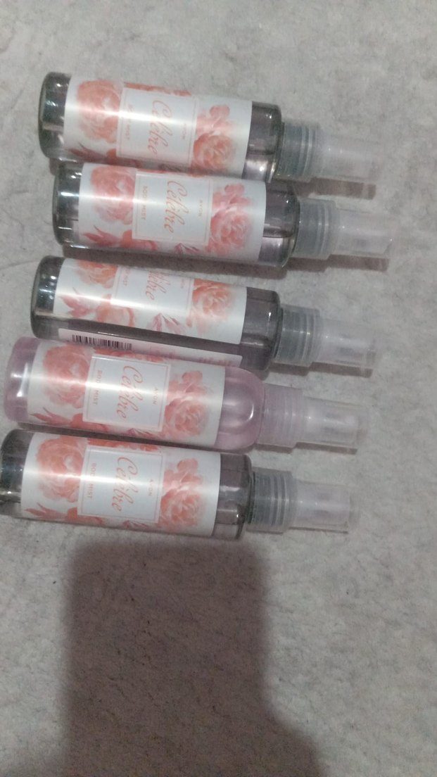 Çiçek desenli etiketli, sprey başlıklı beş adet kadın parfümü seti. toplu satılıktır