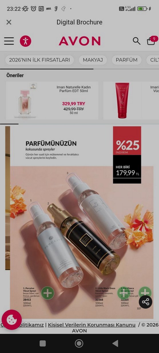 Kadınlar için 50ml parfüm spreyleri %25 indirimle sunuluyor. Her biri 179,99 TRY fiyatıyla ferah ve hoş koku sağlar.