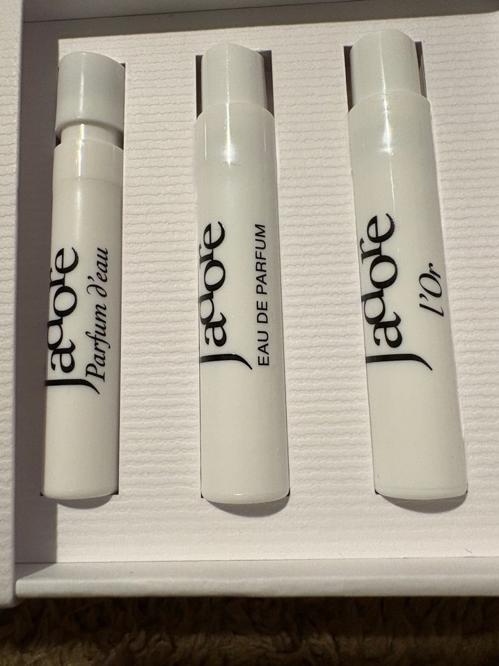 L'Adore koleksiyonundan Parfum d'eau, Eau de Parfum ve L'Or çeşitlerini içeren üçlü kadın parfüm seti. Beyaz sprey şişelerde. Nadir gelen setlerden. L’or 50 ml 8.120 tldir. Hediye edilebilir. Şık bir karton çizgili altın yazılı kutudadır.