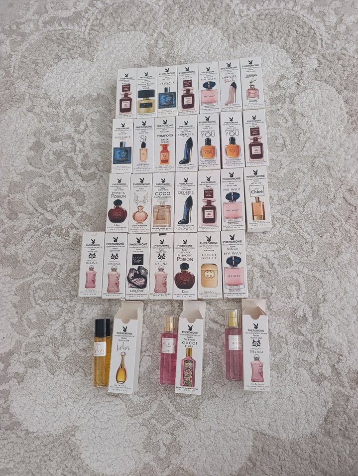 Farklı kokularda ve şık ambalajlarda kadın parfümü mini setleri. Denemek veya seyahat için uygundur.