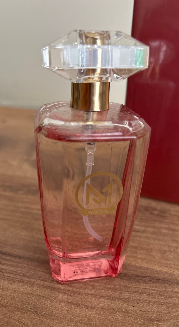 Bir kere sıkıldı bi süre parfüm kullanamayacağim oyuzden satıyorum Kadın parfümü, şeffaf pembe cam şişede, keskin şeffaf kapak ve altın renk detaylarla tasarlanmıştır. Ön yüzünde zarif logo bulunur.