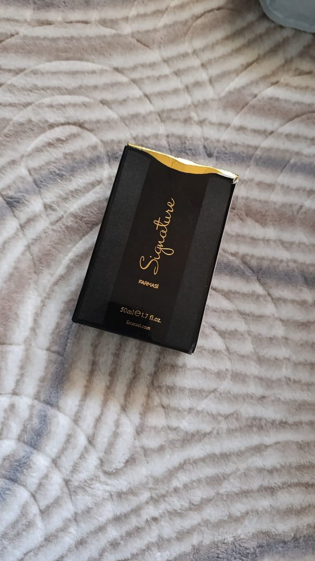 Signature kadın parfümü, 50 ml hacminde. Siyah ve altın detaylı şık ambalajda sunulmuştur. Günlük kullanıma uygundur.