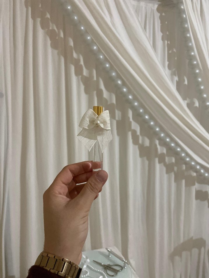 Kadın Parfümü Şişesi Beyaz Fiyonk Detaylı
