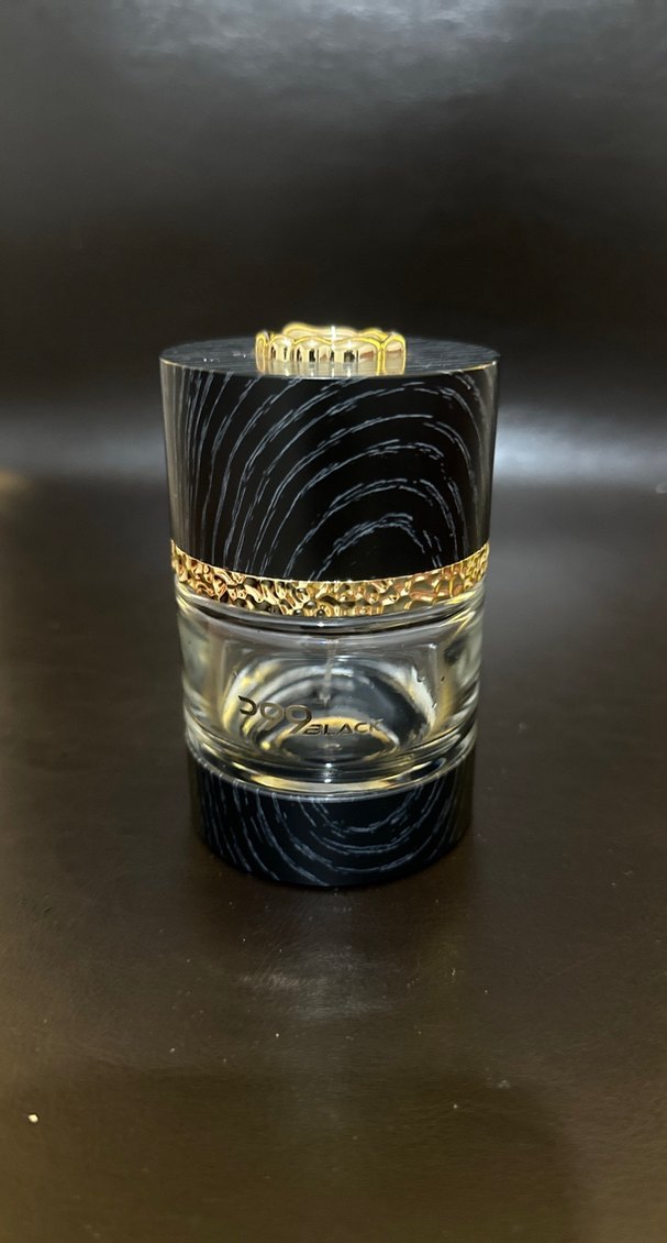 Altın detaylı siyah şişede kadın parfümü, şık ve zarif bir tasarıma sahiptir.