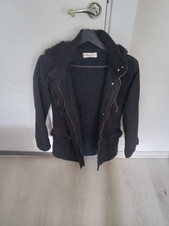 M beden ama s ve xs bedenler için daha uyumlu.Kapşonlu,fermuarlı,zımba ve zımba düğmeli.Materyal iç ve dış pamuk.Yaka kısmındaki lastik bölümü polyester pamuk karışık. Sol cepteki zimba kayıp kapak altına denk geldiği için görünmüyor.