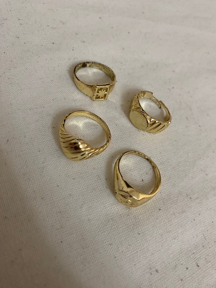 Parlak altın renginde, desen içermeyen, vintage esintili kadın yüzük seti. Günlük kullanım için uygun, zahmetsiz şıklık sunar.
