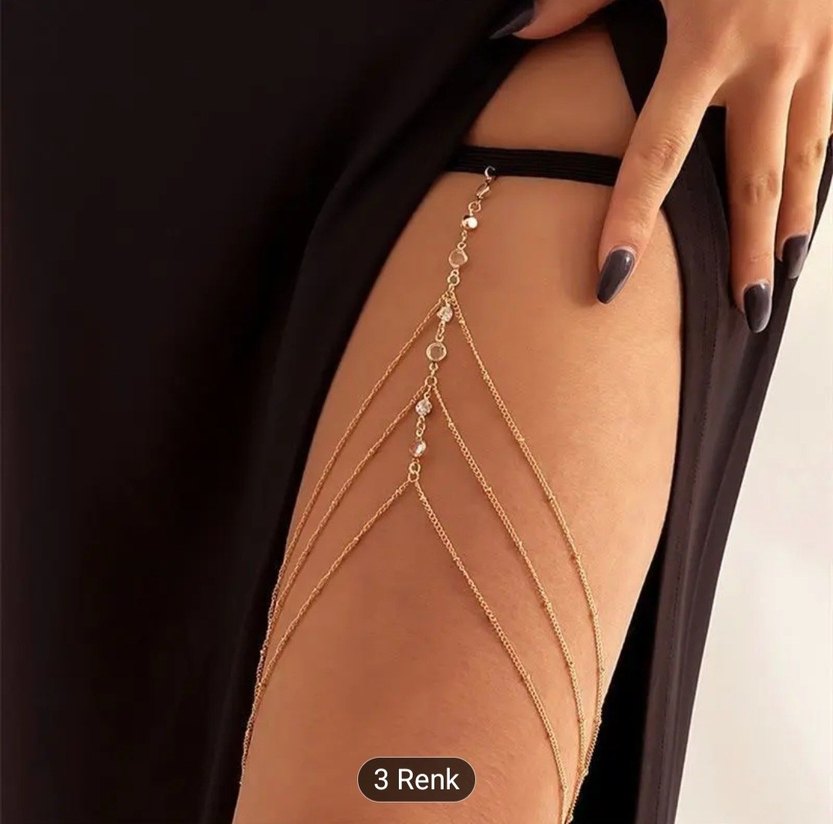 Kadın Parlak Altın Zincir Detaylı Vücut Aksesuarı