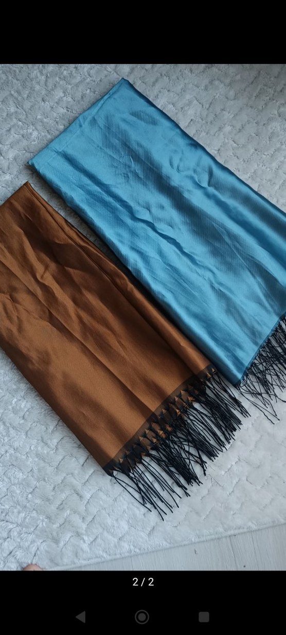 Kadın Parlak Camel Drapeli Saten Şal 2li