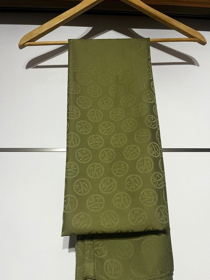 Kadınlar için parlak haki renkte, desenli ve drapeli tasarıma sahip, ipek görünümlü şal. Minimalist ve sade bir tarz sunar.