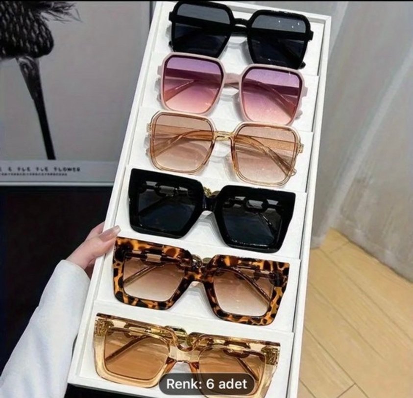 Parlak kahverengi tonlarda, farklı açık renklerde 6 adet kadın güneş gözlüğü seti. Trendy sokak stili ve Paris havası yansıtıyor. ️