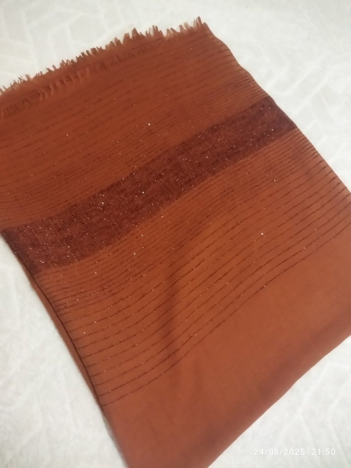 Yumuşak sentetik kumaştan, parlak kiremit ve pilili detaylara sahip kadın şalı, rahat bohem tarzı için uygundur. ✨
