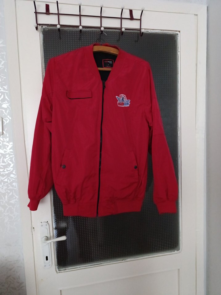 Kadınlar için parlak kırmızı renkli, fermuarlı ve uzun kollu ceket. Rahat kesim, yakası kesik ve yumuşak fleece kumaştan yapılmıştır. beden XL kadın erkek giyebilir boy 70cm koltuk arası 55 cm cepde az bir söküntü var dikilir bilginiz olsun fiata yansittim teknofest.