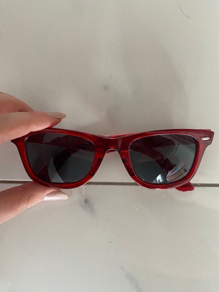 Parlak koyu kırmızı renkte, retro tarzda ve sade tasarıma sahip kadın güneş gözlüğü. Karşı kültür havası taşıyan klasik model.Ray-Ban klasik modelidir muadil olarak düşünülebilir hiç kullanılmadı