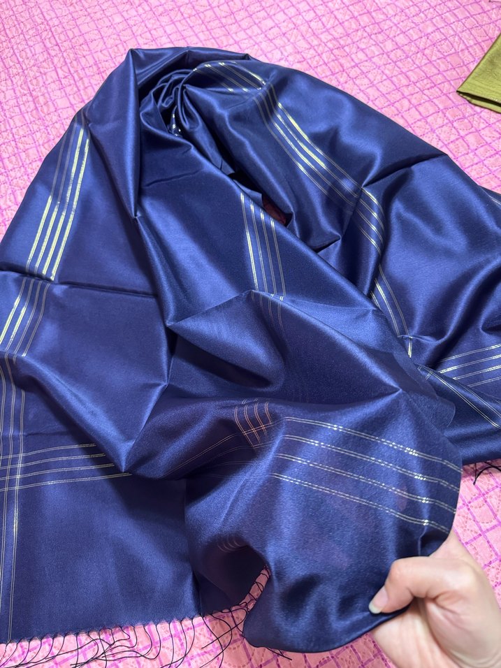 Kadın Parlak Lacivert İpek Şal