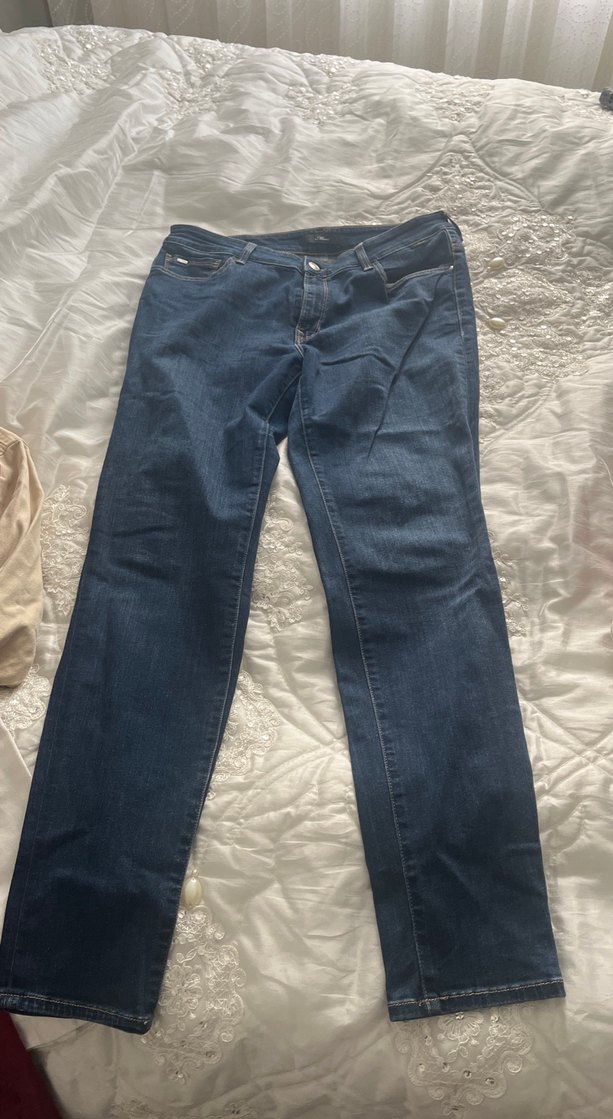 Kadınlar için parlak lacivert kot pantolon, normal midi boy ve kemerli. Rahat, desen içermeyen günlük kullanıma uygun bir model. 31/30