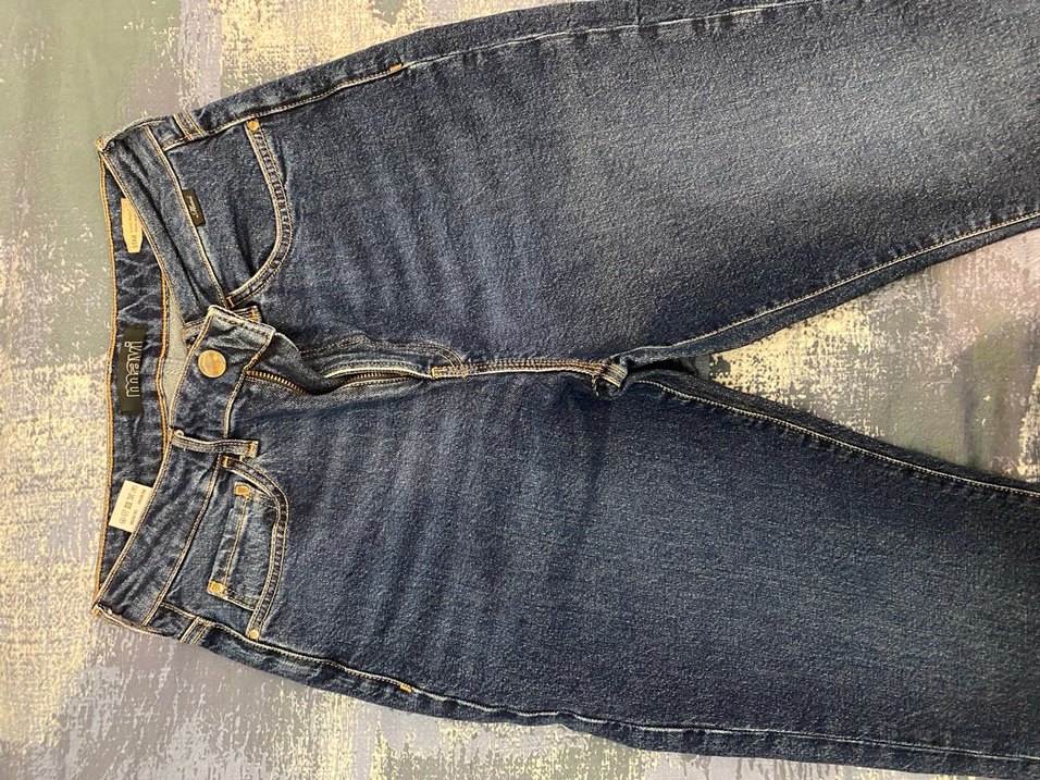 mavi denim kumaştan, tokalı, normal midi boyda, kadınlara özel dar kesim kot pantolon. Günlük rahat kullanım için uygundur. 27/29 beden mavi kot