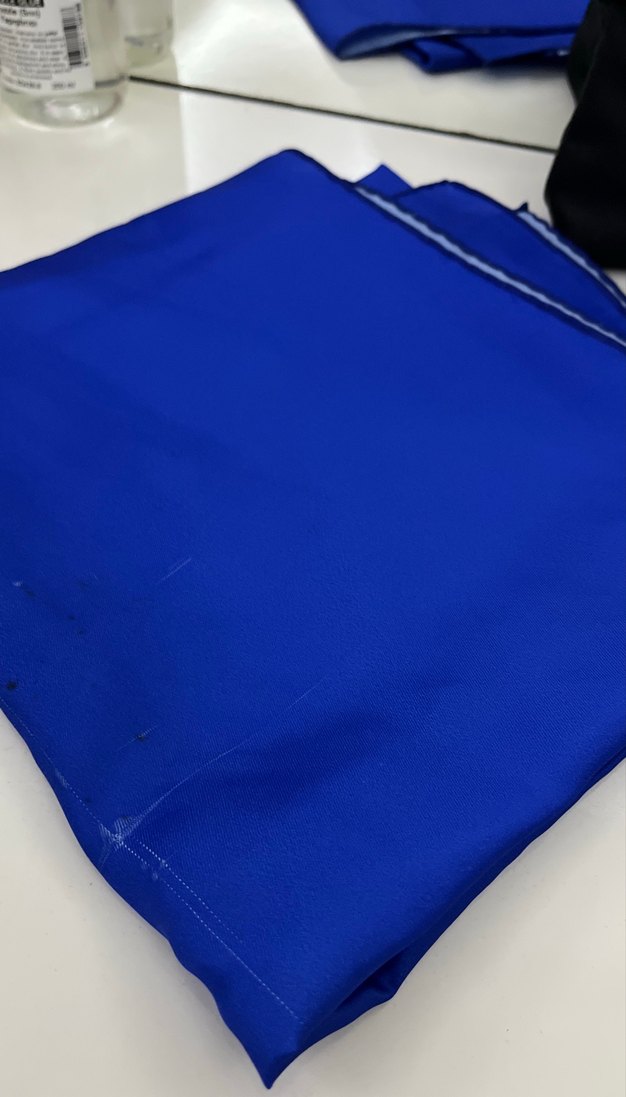 Kadınlar için parlak mavi sentetik kumaştan eşarp çok az iğne izi var