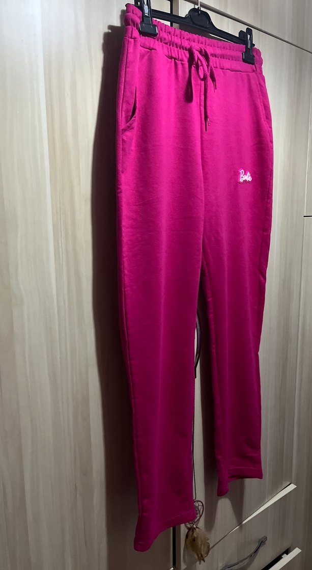 Kadınlar için parlak pembe, bol kesim, fermuarlı cepli ve midi boy rahat eşofman altı. Yumuşak ve sıcak kumaştan, günlük ve sokak stiline uygun. Ürün hiç kullanılmadı temiz kusursuz iki iplik likralı