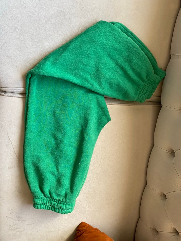 Kadınlar için parlak yeşil renkte, yumuşak ve sıcak kumaştan rahat kesim eşofman altı. Normal boyda, gündelik kullanıma uygun zahmetsiz şıklık sunar.