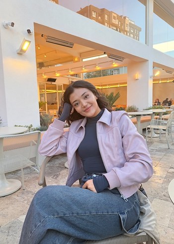 Kadın Pastel Denim Deri Ceket