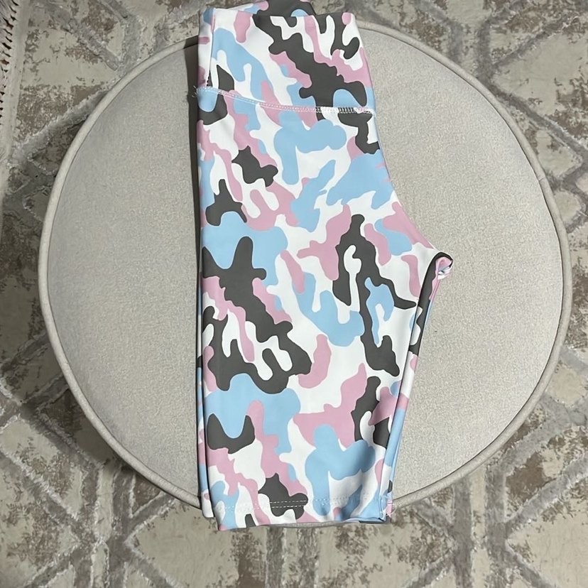 Kadınlar için pastel kamuflaj desenli, kısa ve vücuda oturan spor tayt. Yumuşak sentetik kumaştan üretilmiş, cırt cırt detaylıdır. Spor ve günlük sokak stili için uygundur. ♀️