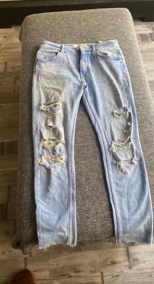 Arka tarafında ufak bi yırtık var pantolonun rengi biraz soluk