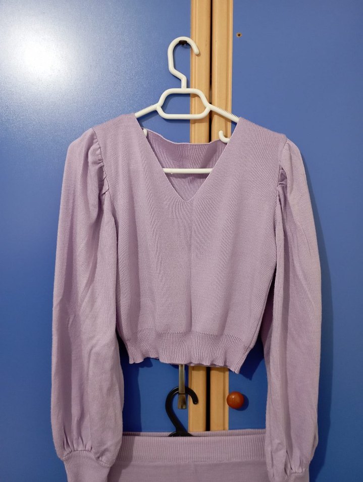 Kadın Pastel Mor V Yaka Triko takım
