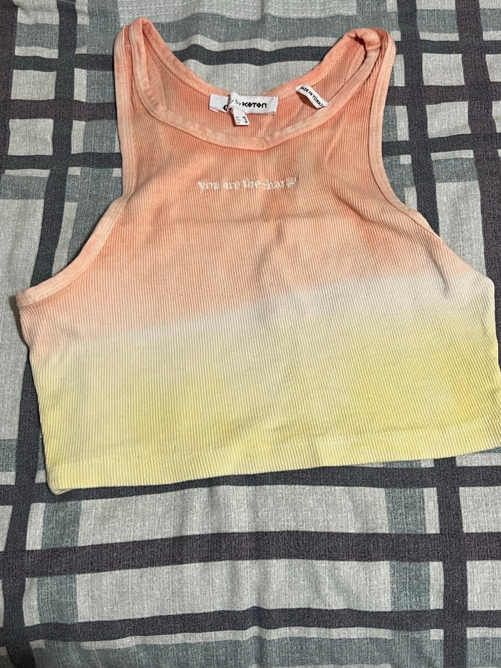 Kadınlar için pastel renkli tie-dye desenli, kolsuz ve kısa mini atlet. Yumuşak sentetik kumaştan, rahat ve şık bir sokak stili sunar.