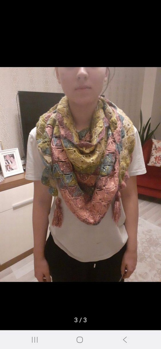 Kadınlar için örgü pastel renkli şal, bohem ve retro tarzını yansıtan püsküllü detaylara sahip.