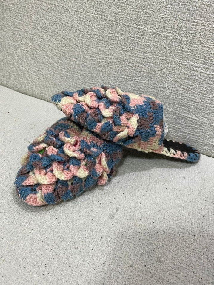 Kadınlar için pastel tonlarda tie-dye desenli, örgü yapıda, bohem tarzda ve stiletto topuklu rahat ev terlikleri. 37-38 beden için uygundur eğer ayağınız taraklı değil ise 39 numara pekâla olur.