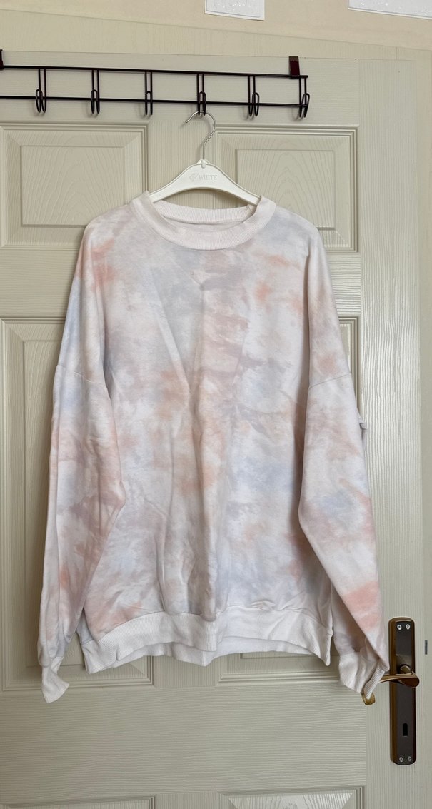 Kadınlar için pastel tonlarda tie-dye desenli, rahat kesim, uzun kollu ve yuvarlak yakalı keten sweatshirt. Günlük kullanıma uygun, rahat ve trend sokak stili sunar. Sorunu yok 3 4 kez giyildi