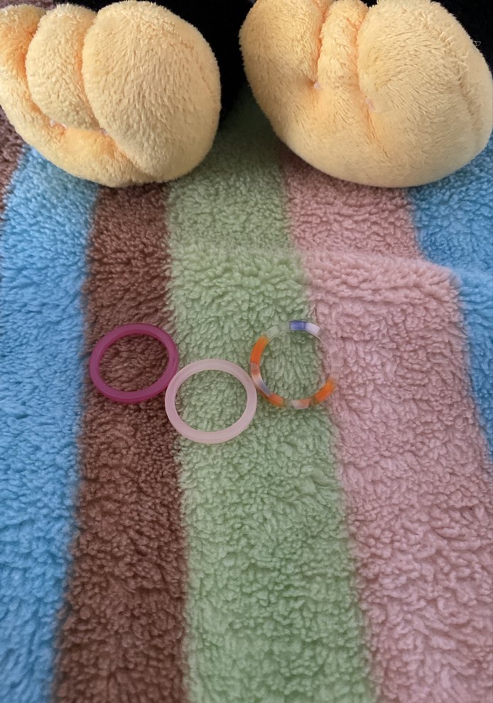 Pastel renklerde, bağlama desenli, elastik yapıda üçlü kadın yüzük seti. Rahat, bohem ve retro tarzı yansıtıyor.