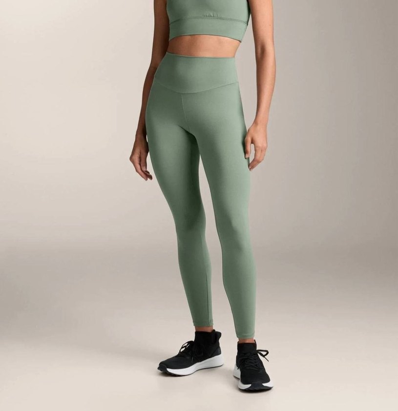 Pastel yeşil, normal boy midi tayt, rahat ve şık sentetik kumaşla spor ve sokak stilini birleştirir. ♀️