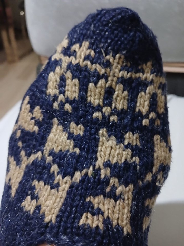 Lacivert tonlarında, rahat dokulu ve hafif desenli hiç kullanılmamış 39 40 numara uyumlu el örgüsü bayan patik. Günlük kullanım için uygundur.