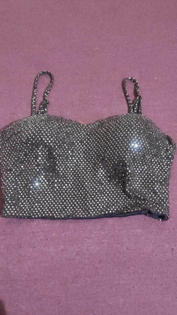Kadın Payetli Mini crop esnek