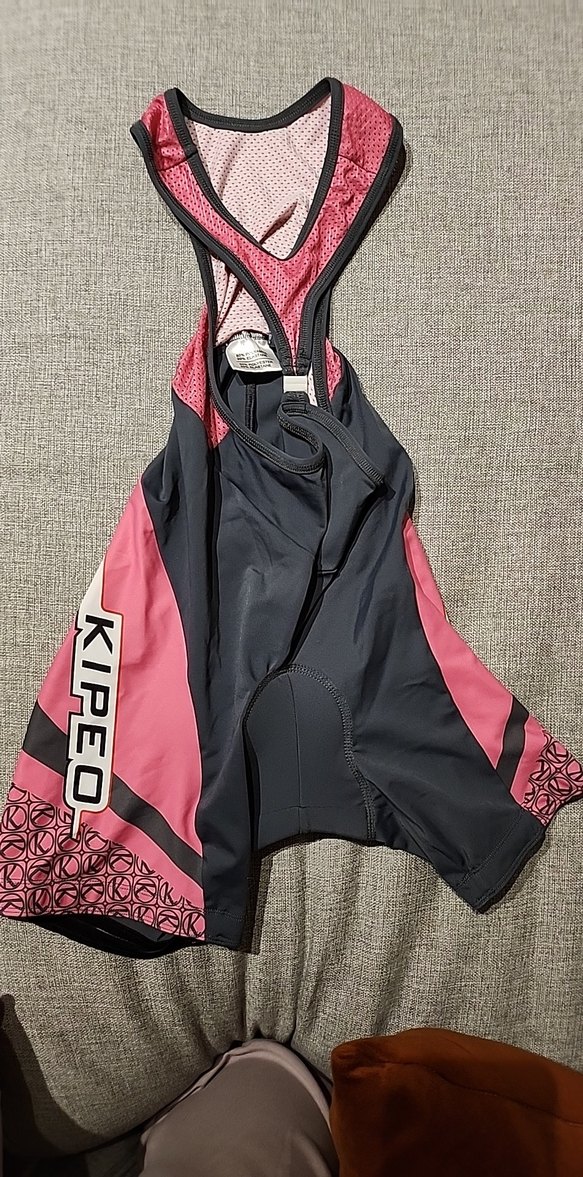 Kadınlar için pembe baskılı, straplez yaka ve kolsuz biker atlet. Sentetik kumaştan, fermuarlı ve baskılı desene sahip. KIPEO logosu içerir. ️♀️