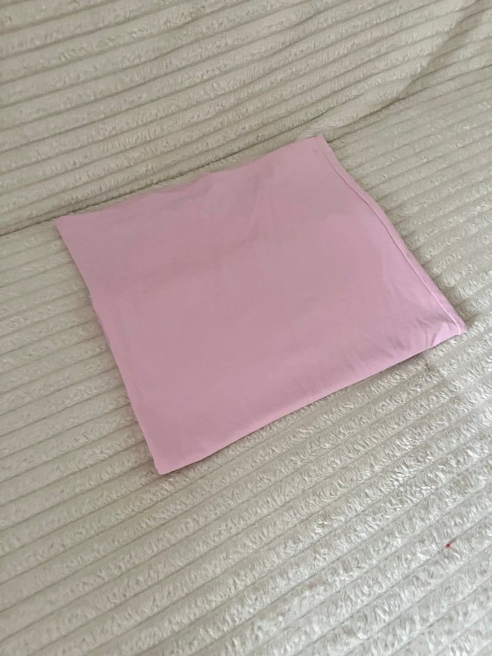 Pastel pembe, yumuşak sentetik kumaştan yapılmış,esnek crop