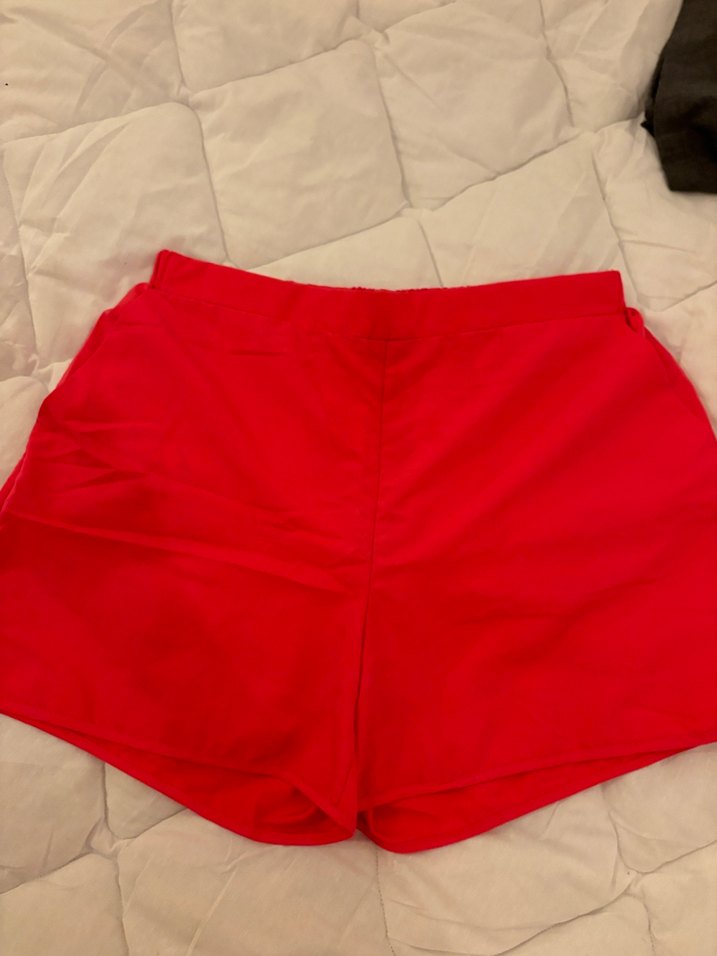 Kadın mini şort, bol kesim ve ipeksi dokuda, parlak yüzeyiyle plaj ve sokak stiline uygun.