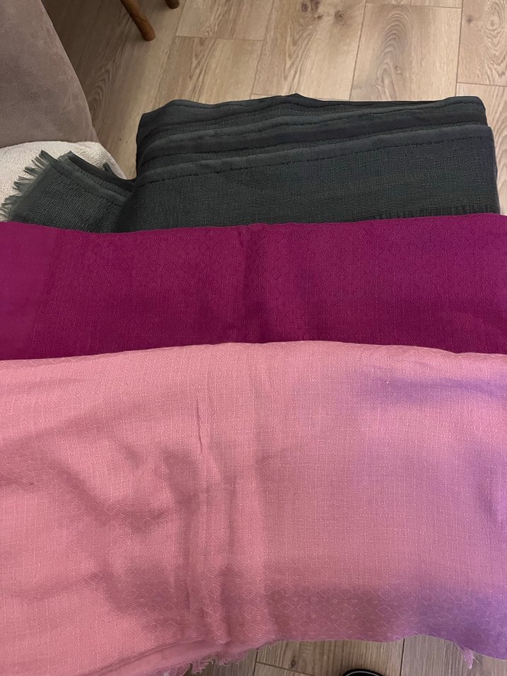 Kadınlar için saten dokulu, drapeli tasarıma sahip koyu pembe renkte, rahat ve bohem tarzı yansıtan şal.