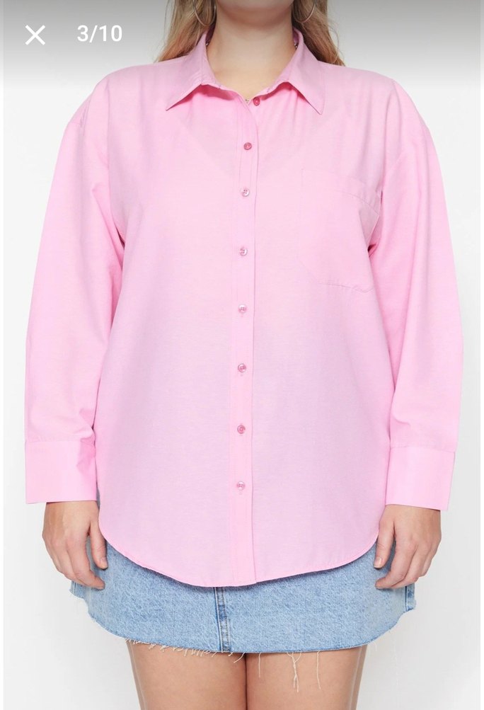 Kadınlar için pamuklu, düğmeli, uzun kollu, salaş kesim pembe gömlek. Normal midi boyda, desen içermeyen rahat bir tasarıma sahiptir. Günlük sokak stili için uygundur.