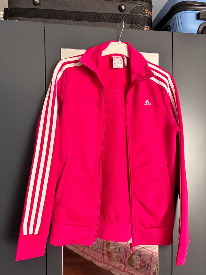 Kadınlar için pembe, fermuarlı, uzun kollu ve yüksek yakalı spor ceket. Yumuşak ve sıcak dokulu kumaştan, sportif ve sokak stiline uygun.