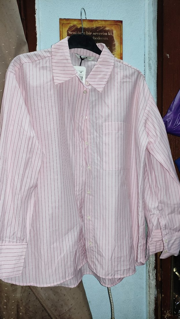 Çizgili pembe renginde hoş, rahat gömlek. Salaş ve bol kesimdir 38-42 beden uyumludur. Ürünlerde iade kabul edilmeyecektir lütfen detaylı inceleyerek alınız.