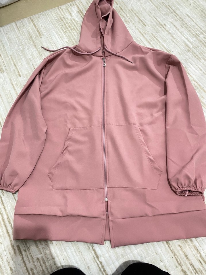 Yumuşak ve sıcak kumaştan, fermuarlı, kapüşonlu ve uzun kollu pembe bol kesim ceket Ön ceplidir, günlük kullanım için uygundur. İkili takım tesettür